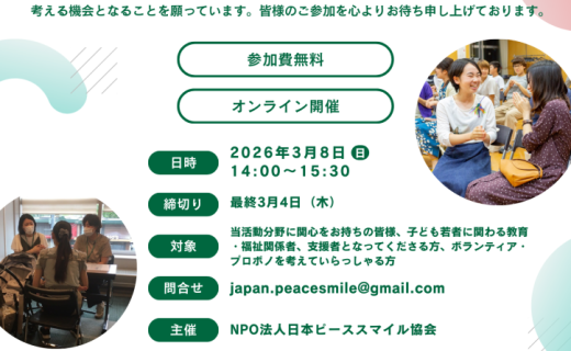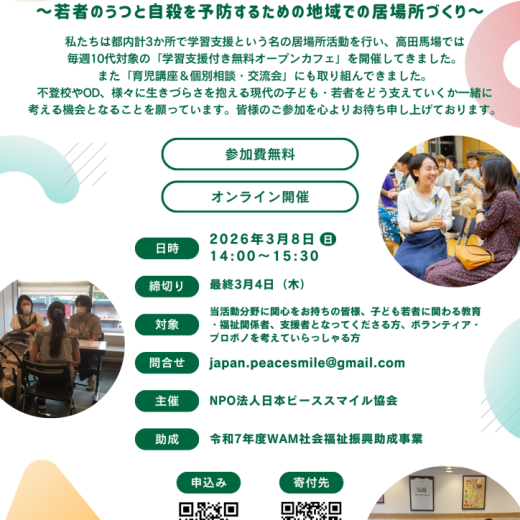 自己肯定感を高め、生きる力を育むことで、青少年の自殺とうつを予防する。心が温かくなり自分の大切さを体感できる、それがPeace Smile Methodです。