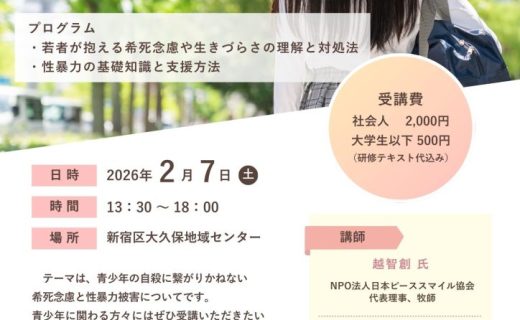 青少年に関わる支援者・福祉・教育関係者の皆さんにお勧めする研修です。...